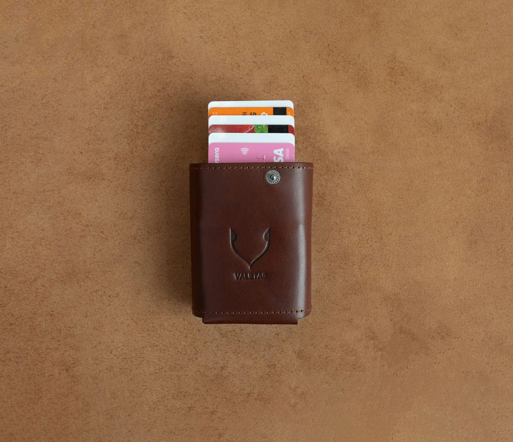 „Valetas“ piniginėje įdiegtas išmanus kortelių išstūmimo mechanizmas leidžia korteles patogiai pasiekti vienu piršto paspaudimu.